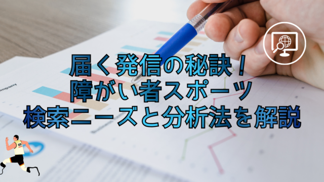 SEO・マーケティング 届く発信の秘訣!障がい者スポーツの検索ニーズと分析法を解説 本記事では検索ニーズに基づいたキーワードの選び方や、具体的な分析方法について詳しく解説します。 2026.03.19 SEO・マーケティング障がい者スポーツ支援障がい者支援